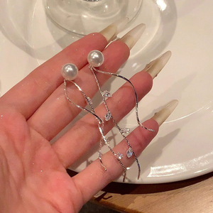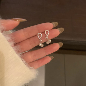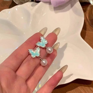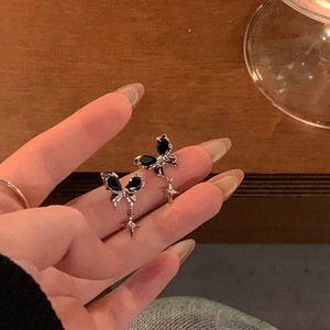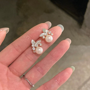 2025韩系珍珠流苏耳环女轻奢设计锆石蝴蝶耳夹百搭高级感耳坠耳饰