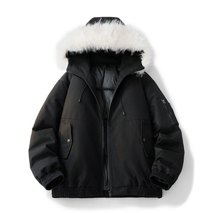 跨境派克工装棉服男女同款秋冬季毛领棉袄加厚情侣款连帽棉衣外套