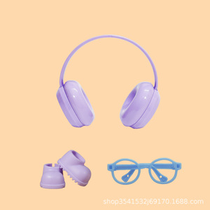 labubu耳机鞋子眼镜三件套眼镜卡通靴子耳机拉布布配饰娃衣套装