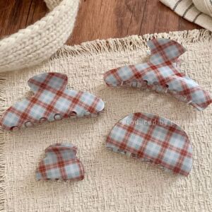 蓝咖色格子半圆抓夹