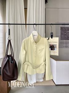 【FEI】58%莱赛尔天丝棉立领腰带衬衫百搭纯色短外套衬衣(配腰带)
