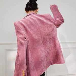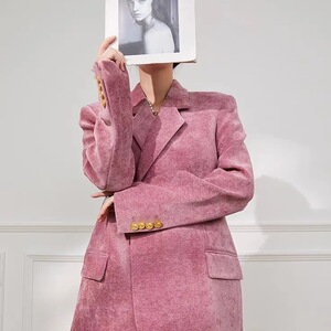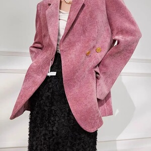 雪尼尔复古西装外套女新款2024秋冬收腰高级小香风设计感西服上衣