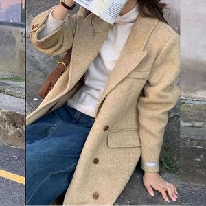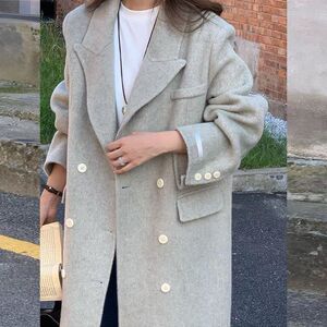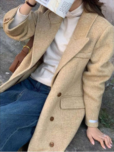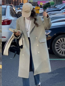 秋季六扣长款新款人字纹西装领双面羊毛大衣毛呢外套女0917-174