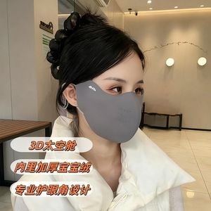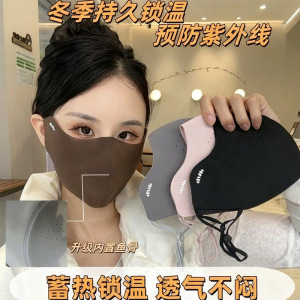 2025新款豹纹鱼骨3D立体保暖口罩秋冬护眼角防紫外线防风加绒面罩