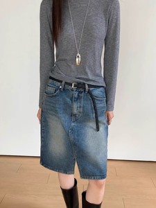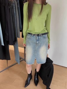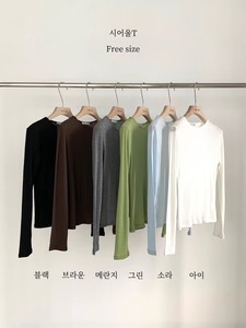 现h韩国东大门2025年秋and the纯色圆领羊毛天丝混纺打底衫女T恤
