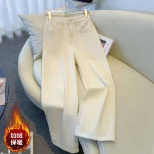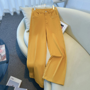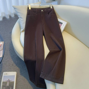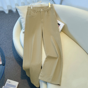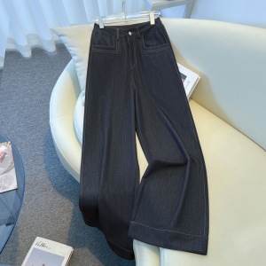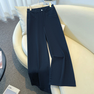 纯色阔腿裤子女2025新款早秋高腰宽松百搭简约直筒裤小个子牛仔裤