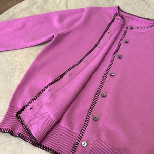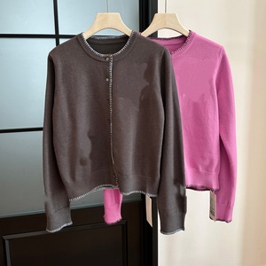 25秋季新款女士简约休闲随性风艺术绣花撞色钩边针织开衫0916k16