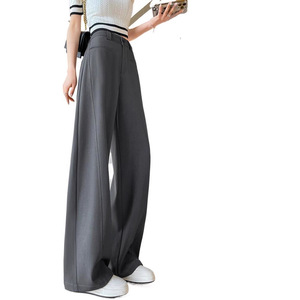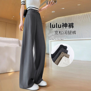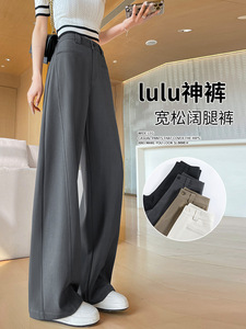 灰色高级感阔腿香蕉裤女2025新款垂坠感小个子弯刀显瘦直筒西装裤