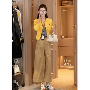 早秋氛围感穿搭套装女时尚洋气减龄刺绣黄色开衫休闲阔腿裤两件套