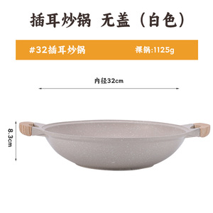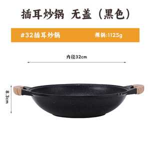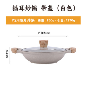 韩式木柄双耳不粘锅家用麦饭石玻璃盖汤锅通用便携电磁炉炒锅批发