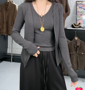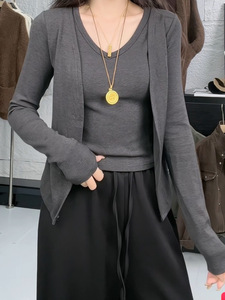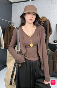 2025秋季新款韩版时尚气质百搭显瘦长袖T恤休闲假两件设计感上衣