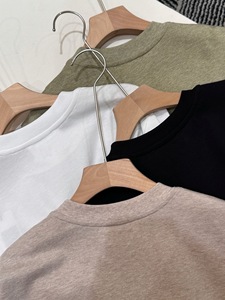 091602 秋季新款男女圆领长袖纯色刺绣宽松百搭可内搭显瘦上衣T恤