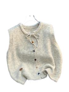 韩系复古系带针织开衫马甲女早秋季宽松百搭叠穿坎肩无袖毛衣背心