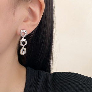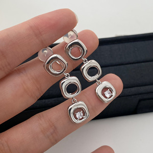 小众设计高级感不规则几何镂空方形流苏耳夹轻奢独特个性气质耳钉