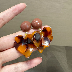 复古豹纹亚克力花朵耳钉
