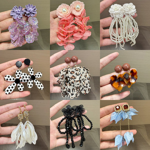 夸张豹纹玫瑰流苏碎花飘带耳钉