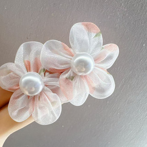 简约网纱珍珠山茶花耳钉