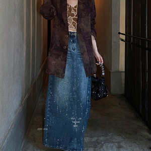 【满天星】烫钻亮闪时髦感牛仔半裙2025新款夏季高腰显瘦半裙