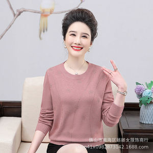 洋气妈妈秋装长袖针织打底衫50岁6070中老年女装纯色毛衣打底衣服