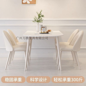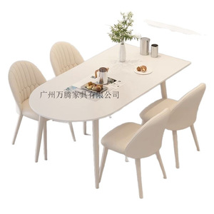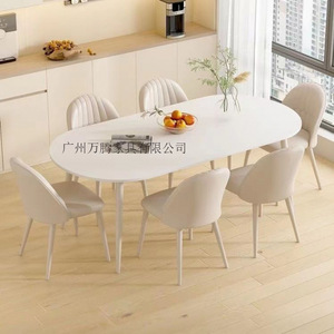万腾轻奢现代简约奶油风吃饭桌子椭圆形岩板餐桌小户型家用餐桌椅
