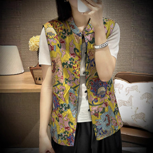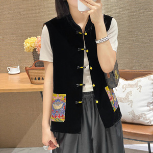 深圳南油女装2025秋款上新香云纱+真丝丝绒两面穿马甲立领上衣女