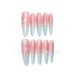 【皎珑】新品青曼蝴蝶结法式猫眼穿戴甲纯欲显白长水滴设计高级