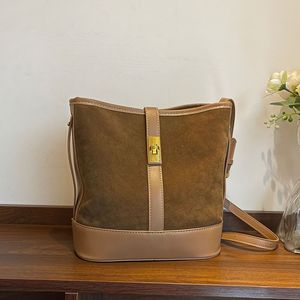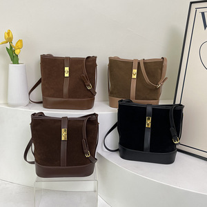 跨境撞色大容量包包新款复古风简约水桶包时尚洋气百搭单肩斜挎包