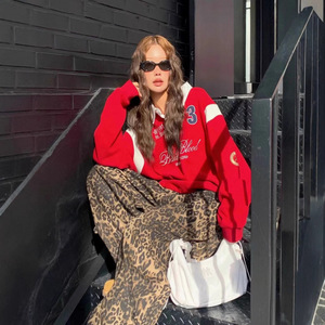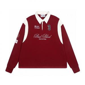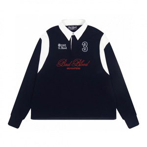 韩国Badblood美式复古拼接撞色贴布刺绣3号球衣长袖polo领卫衣女