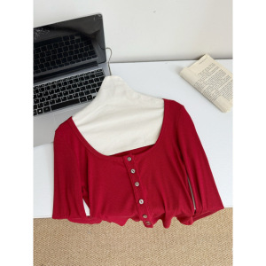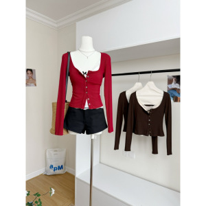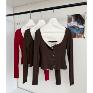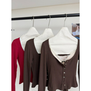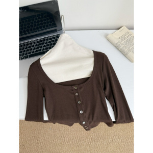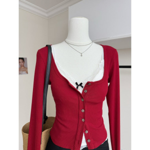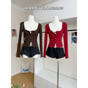 2025新款轻氧T恤坑条圆领针织开衫外搭女装初秋修身显瘦长袖上衣