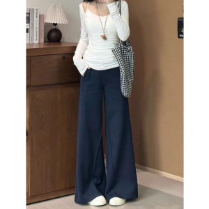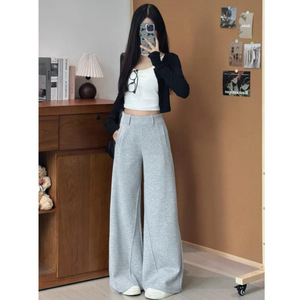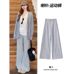 2025新款运动阔腿裤女梨型身材秋季新款直筒慵懒风休闲弯刀裤子