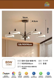 奶白+胡桃木色+砂镍 5头 【三色调光】LED 80W