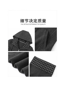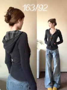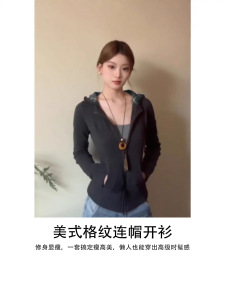 深花灰格纹连帽外套