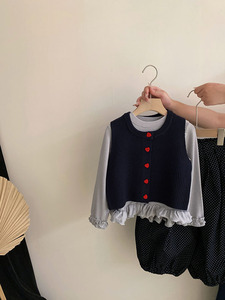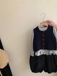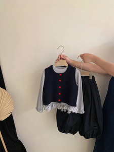 女童韩版三件套秋季2025新款叠穿打底马甲真两件上衣波点休闲裤子