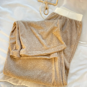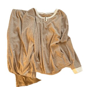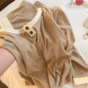 韩版简约风纯色睡衣女秋季2025长袖长裤宽松休闲大码可外穿家居服