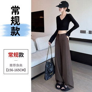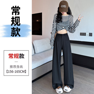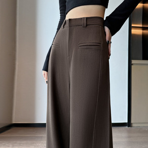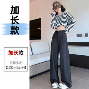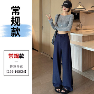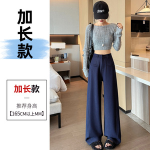深蓝色竹节软牛仔裤女2025新款秋季高腰直筒垂感宽松阔腿拖地裤子