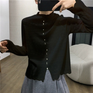 25现款欧根纱蕾丝钉珠高品质厚款秋冬打底衫女针织上衣洋气针织