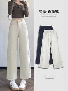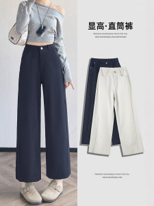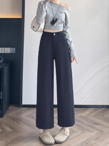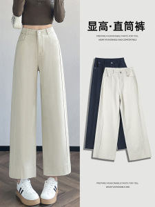 天丝棉直筒裤子女小个子2025秋季新款高腰显瘦窄版九分直筒裤7243