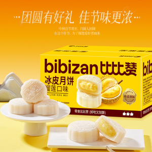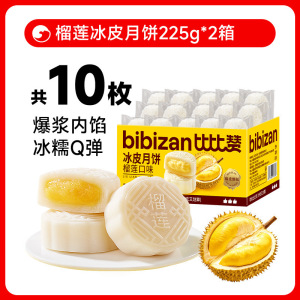 比比赞榴莲味冰皮月饼奶黄流心蛋黄月饼中式糕点心中秋送礼品批发