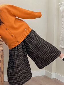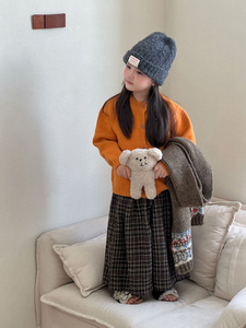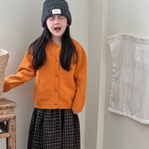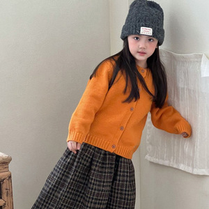 女童韩版纯色针织开衫2025秋季新款百搭洋气格子休闲阔腿裤两件套
