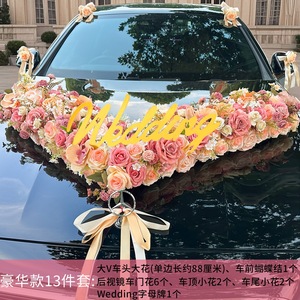 主婚车装饰车头花卡布奇诺大车队结婚头车花全套花车吸盘花绢花