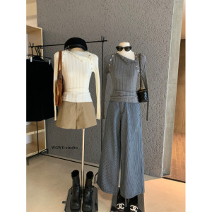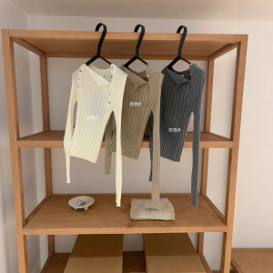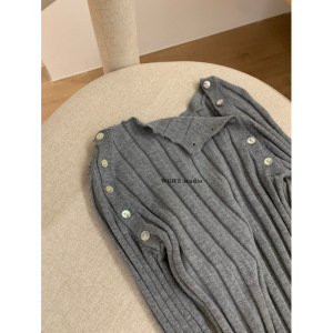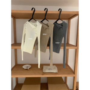 塞纳【WGWE】7011秋装2025新款开扣针织衫斜肩内搭毛衣
