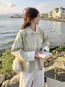 独特漂亮气质蕾丝拼接外套女2025秋季新款小个子短款休闲夹克上衣