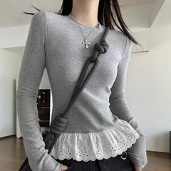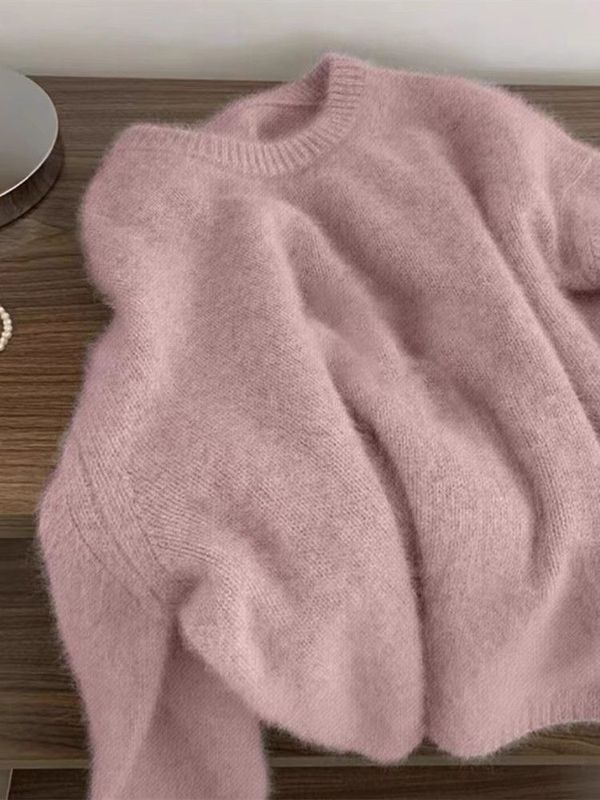 野媛秋冬新款慵懒风毛衣女装显白圆领长袖软糯小众宽松针织衫上衣
