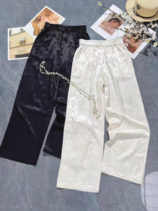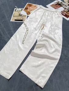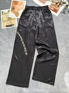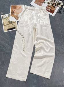 双色人丝提花面料喜上眉梢松紧腰有口袋经典百搭国风秋季直筒裤