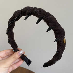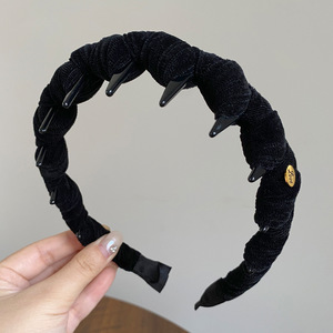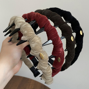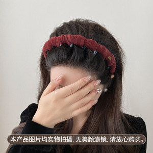 秋冬加厚丝绒带齿发箍女简约百搭纯色高颅顶头箍外戴洗脸压发卡新