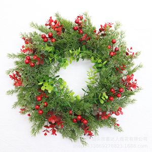 红果圣诞装饰仿真花环家居摆设尤加利藤圈挂橱窗装饰