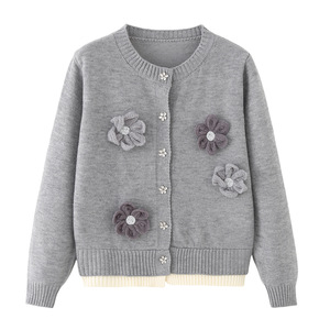 花朵毛衫开衫女装2025秋冬新款圆领针织毛衣Q404Z0206M50