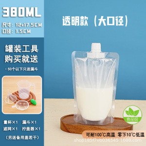 一次性透明吸嘴袋液体食品级中药豆浆汤商用大口径耐高温冷藏包装