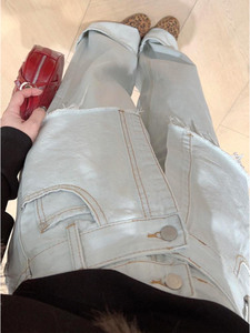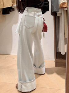 大码设计感假两件叠穿牛仔裤女2025夏季美式宽松屁帘阔腿拖地裤子
