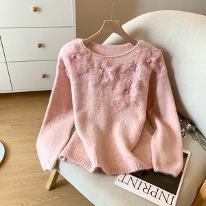 LYX 韩版气质蕾丝立体花朵针织毛衣女秋冬新款慵懒风宽松减龄上衣
